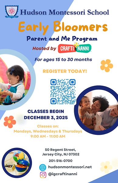 Hudson Montessori, in partnership with Crafti Nanni, relaunches its Early Bloomers Parent and Me program for families with children 15 to 30 months. Each session invites families into a world of sensory exploration, including story time, singing, and hands-on arts and crafts. The two-hour sessions begin on December 3 and run on Mondays, Wednesdays, and Thursdays. More information here.