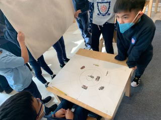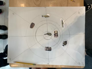 Sonar is a technology used to detect objects underwater. Pictured, students played a sonar game called "find my fish" using different circumferences and cardinal directions.