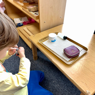 Opening and closing containers is powerful work for young children. It strengthens hand-eye coordination, fine motor control, and dexterity—engaging all ten fingers and developing the pincer grip needed for gripping a pencil and writing. All preliminary activities, like opening bottles, pouring, tonging, transferring, folding, and twisting, build coordination, motor skills, and essential pre-writing abilities. It also builds muscle memory which later will help them with the concepts of clockwise and counter clockwise. Mastery of these activities gives children confidence and builds up their concentration. Concentration is the most foundational skill a child needs to master and excel in math, phonics, science, and higher learning.